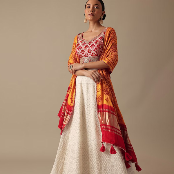 Lehenga CholiWhite, red & yellow embellished lehenga choli with dupatta,