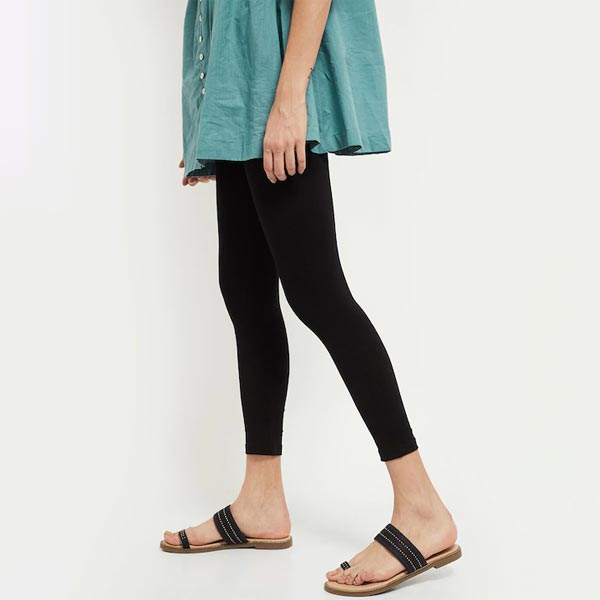 Women Black Solid Ankle-Length Leggings